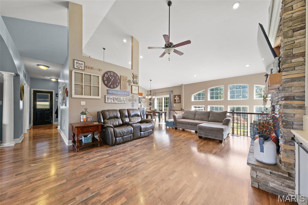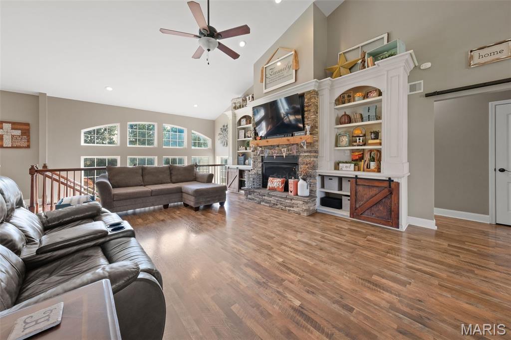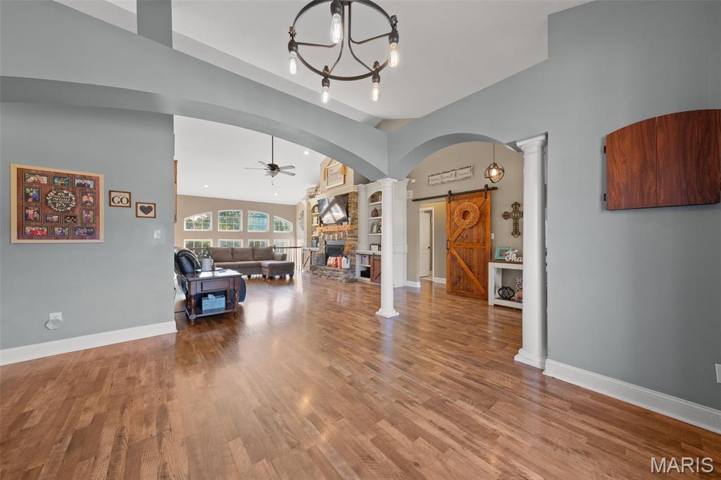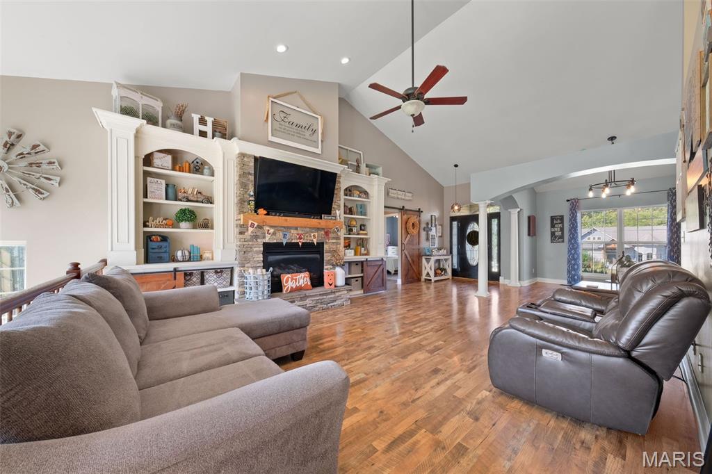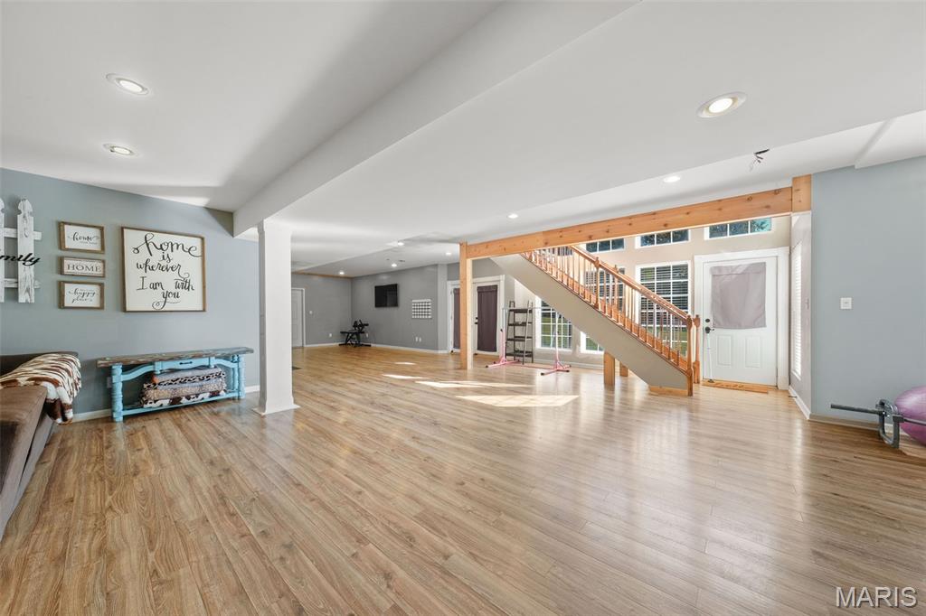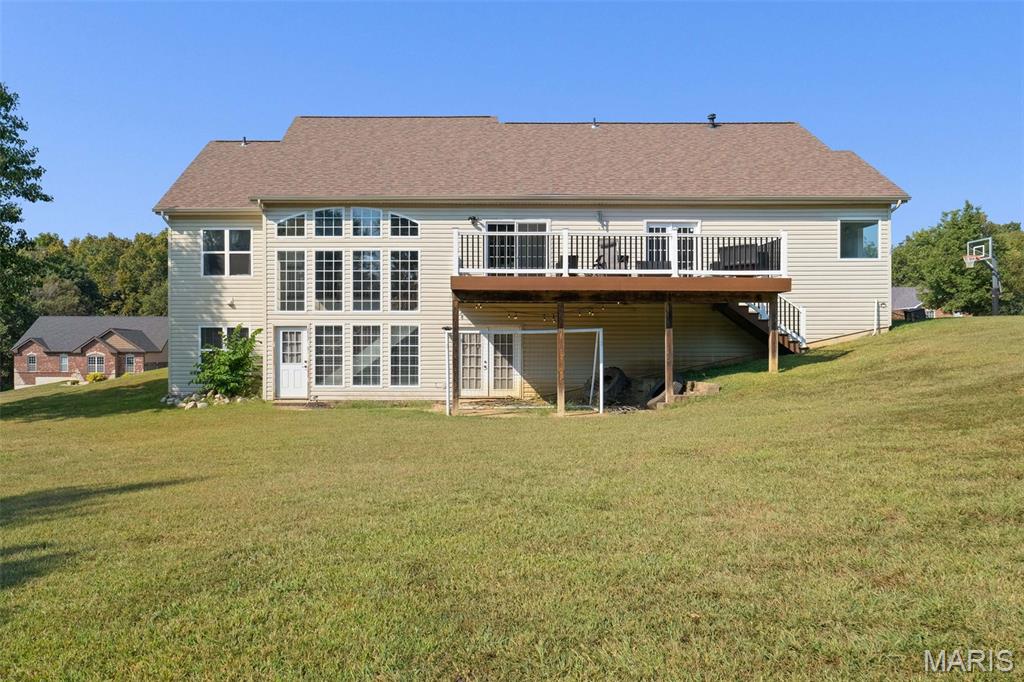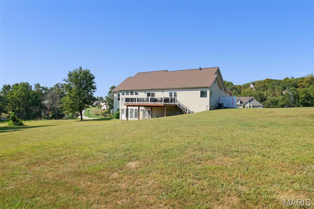Luxurious living on 1.54 lot backing to trees! Incredible home includes side entry 3 car gar, 5 possible bdrms (2 in Lower level and do not have windows), 3 baths , formal dining room, floor to ceiling gas fireplace in great room with wall of windows, split bdrm floor plan-huge master bdrm with luxury bath-walk in pantry in the gourmet kitchen-finished walkout lower level with 9 ft ceilings, rec, fam rm and so much more-this home has everything you could want!