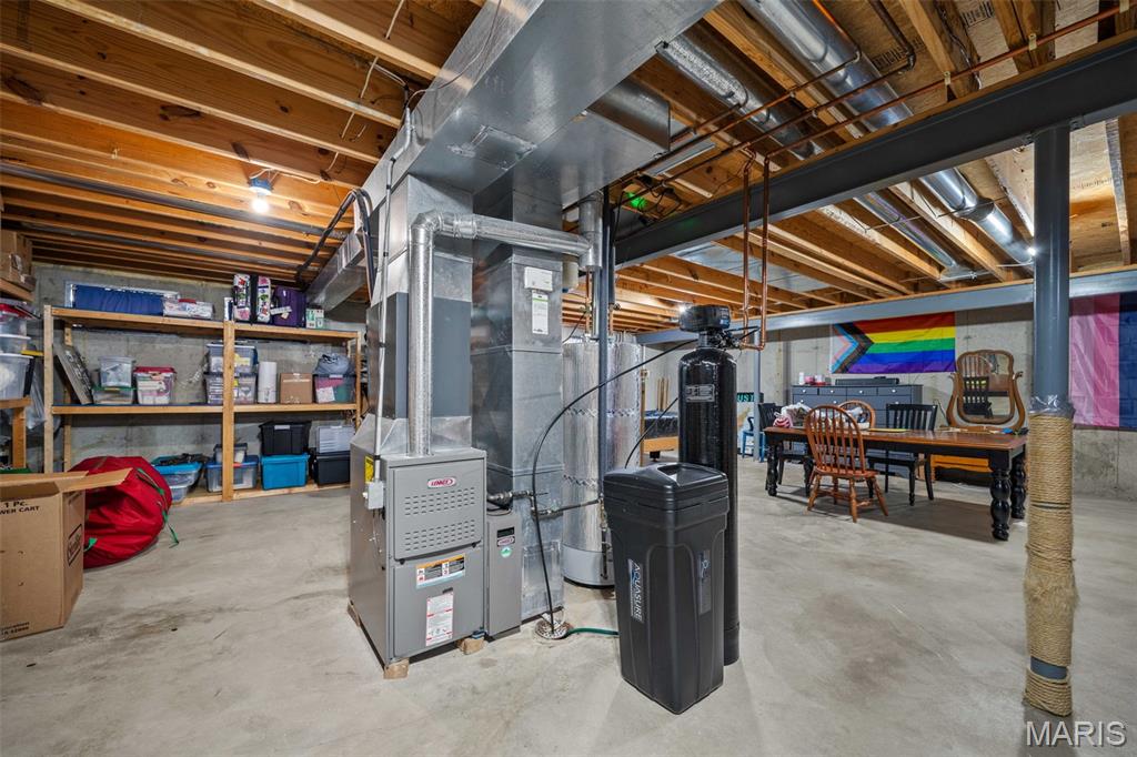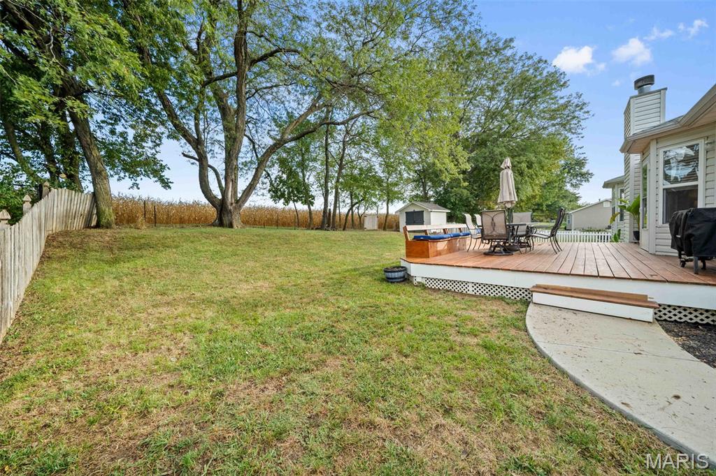 Welcome Home! Beautiful and tastefully landscaped, open concept, ranch home w/ 3 bedrooms (primary en-suite) and 2 full baths. The entryway welcomes you w/ a board and batten accent wall w/ hooks for coats & bags. Notice the open & spacious living room w/ vaulted ceilings and wood burning fireplace that leads to breakfast room, also w/ accent wall, w/ convenient access to large deck for easy entertaining overlooking serene backyard w/ view of farmland beyond the property lines. Back inside, this kitchen is the perfect gathering spot and has S/S appliances and plenty of cabinet & counter space and updated backsplash; pantry too! Main floor laundry is just off kitchen and opens into 2 car attached garage. Shed in the backyard for all the extras! Primary bedroom is large w/ dual closets and updated bathroom en-suite w/ shower. Down the hall are two additional bedrooms w/ updated hall, full bath. Unfinished lower level has an abundance of storage and shelving. Past owners addressed back wall professionally and this owner has paperwork (warranty is transferable). Updates: Roof '23, HVAC '23, Water softener, painting, and more!