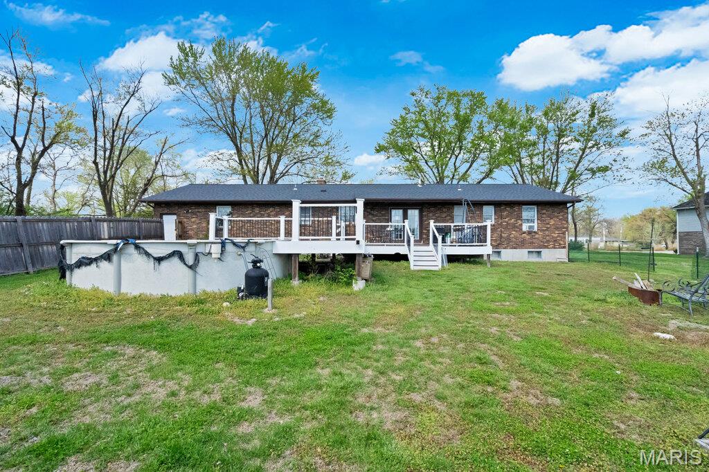Craving space, privacy, and a little breathing room without giving up convenience? This is it! Set on 2 peaceful acres backing to trees, this all-brick ranch delivers that hard-to-find, city-close, country-quiet lifestyle everyone’s chasing right now. Tucked away in an unincorporated setting with low taxes, yet just minutes to Wentzville, Troy, and Winfield, so yes, you can have your land and your latte! Inside, you’ll find over 2,500+ total sq ft of living space with an easy, functional layout that just works for real life. The main level features updated flooring, a spacious kitchen with stainless appliances, and a large mudroom/laundry combo that’s ready to handle boots, backpacks, and busy days. The partially finished lower level opens up major flexibility. Would it be your rec room, home office, or fitness space? And this home offers multi-generational potential with two separate staircases already in place. Step outside, and it only gets better! Composite deck, wide open level yard, mature trees, and room to roam. Whether you're hosting, gardening, or just enjoying a quiet sunset, this is the kind of space that’s getting harder to find. Bonus outbuilding + 3-car garage space means all the toys, tools, and hobbies finally have a home now too! If you’re ready for space, privacy, and a little more peace … Welcome Home!
